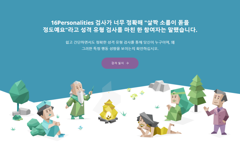 이곳에 가면 무료 성격 유형 검사, 성격 유형 설명, 인간관계 및 직장생활 어드바이스인 16Personalities 사이트라고 알려주네요. 이곳은 성격 유형 검사 성격 유형 검사가 너무 정확해 "살짝 소름이 돋을 정도예요"라고 성격 유형 검사를 마친 한 참여자는 말했습니다. 쉽고 간단하면서도 정확한 성격 유형 검사를 통해 당신이 누구이며, 왜 그러한 특정 행동 성향을 보이는지 확인하십시오. 검사 실시하려면 이 사이트에 들어가는 게 가장 간편한 방법 같아요.